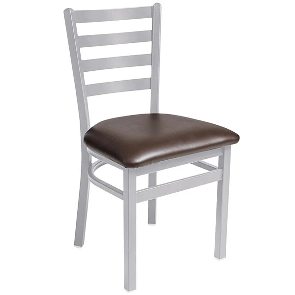 BFM Seating Lima Silver Mist Steel Side Chair With 2″ Dark Brown Vinyl Seat