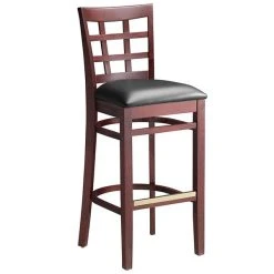 Lancaster Table & Seating Mahogany Window Back Bar Height Chair With Black Padded Seat