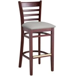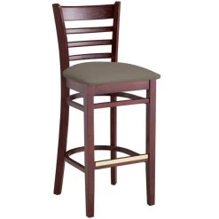 Lancaster Table & Seating Mahogany Ladder Back Bar Height Chair With Light Brown Padded Seat