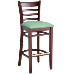 Lancaster Table & Seating Mahogany Ladder Back Bar Height Chair With Green Padded Seat