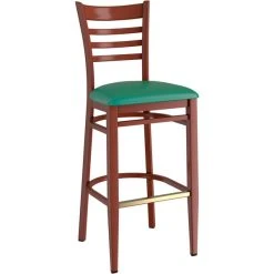 Lancaster Table & Seating Vintage Finish Wooden Ladder Back Bar Height Chair With Blue Padded Seat