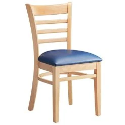 Lancaster Table & Seating Natural Finish Wooden Ladder Back Chair With 2 1/2″ Navy Padded Seat