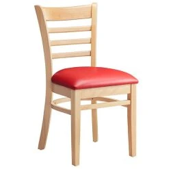 Lancaster Table & Seating Natural Finish Wooden Ladder Back Chair With 2 1/2″ Red Padded Seat