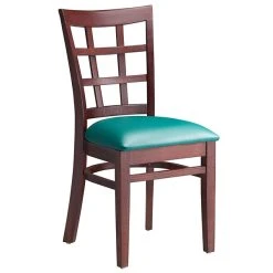 Lancaster Table & Seating Mahogany Finish Wooden Window Back Chair With Seafoam Padded Seat