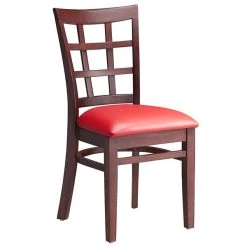Lancaster Table & Seating Mahogany Wooden Window Back Chair With 2 1/2″ Red Padded Seat