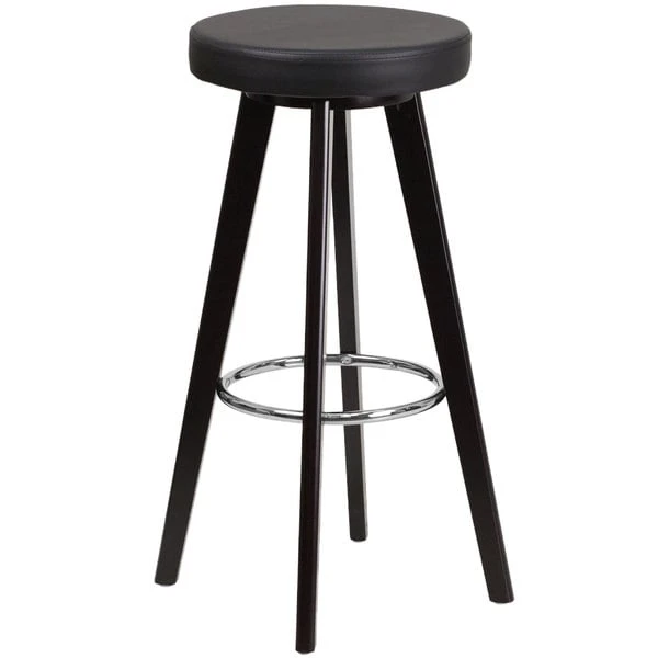 Flash Furniture CH-152601-BK-VY-GG Trenton Series Cappuccino Wood Bar Height Stool With Black Vinyl Seat