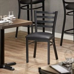 Lancaster Table & Seating Black Finish Ladder Back Chair With 2 1/2″ Black Vinyl Padded Seat