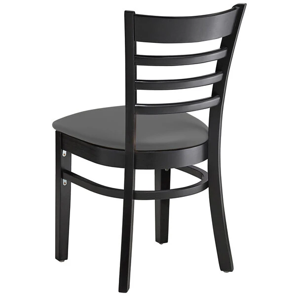 Lancaster Table & Seating Black Finish Wooden Ladder Back Chair With Dark Gray Padded Seat