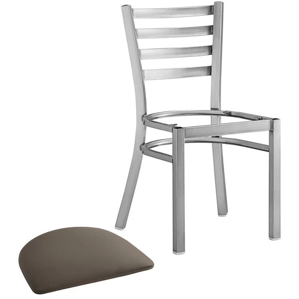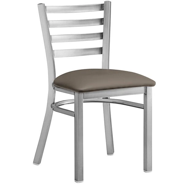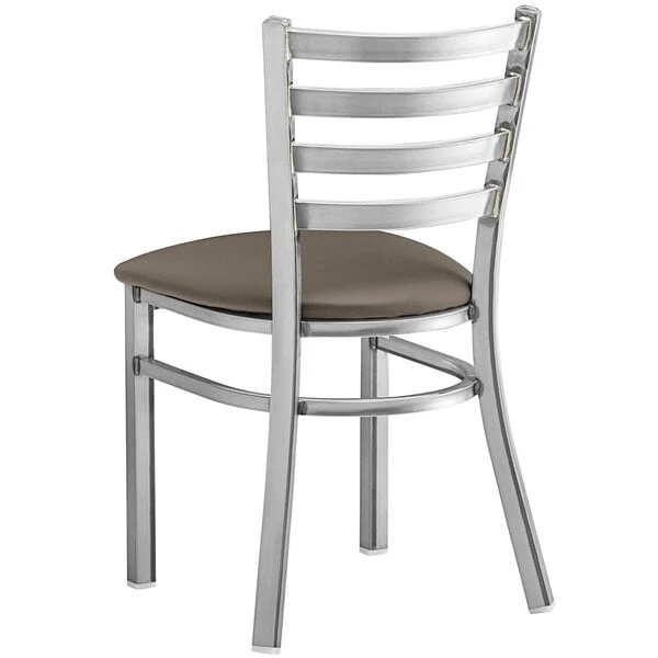 Lancaster Table & Seating Clear Coat Finish Ladder Back Chair With 2 1/2″ Taupe Vinyl Padded Seat