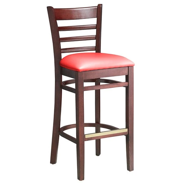 Lancaster Table & Seating Mahogany Ladder Back Bar Height Chair With Red Padded Seat