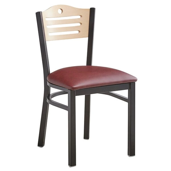 Lancaster Table & Seating Natural Finish Bistro Dining Chair With 1 1/2″ Burgundy Padded Seat