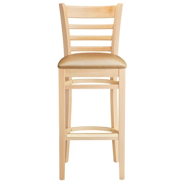 Lancaster Table & Seating Natural Ladder Back Bar Height Chair With 2 1/2″ Light Brown Padded Seat