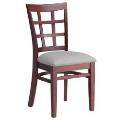 Lancaster Table & Seating Mahogany Finish Wooden Window Back Chair With Light Gray Padded Seat