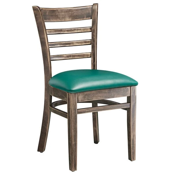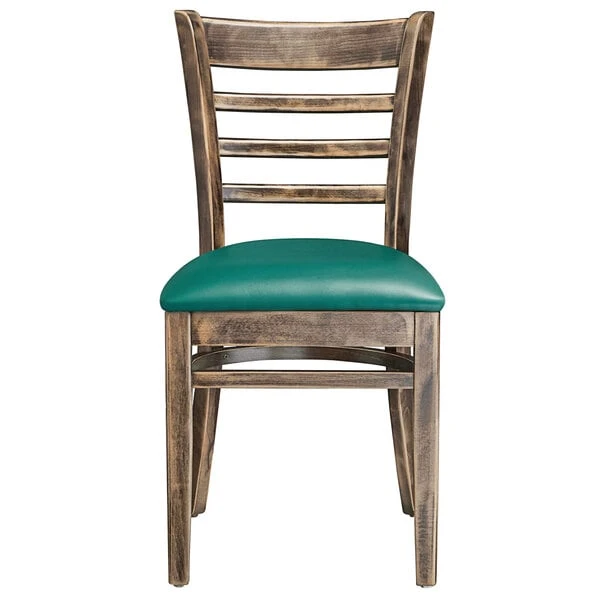 Lancaster Table & Seating Vintage Finish Wooden Ladder Back Chair With 2 1/2″ Green Padded Seat