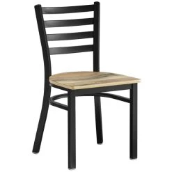 BFM Seating Lima Sand Black Steel Ladder Back Side Chair With Relic Farmhouse Seat