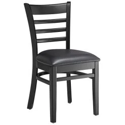 Lancaster Table & Seating Black Finish Wooden Ladder Back Chair With 2 1/2″ Black Padded Seat