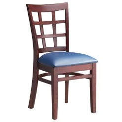 Lancaster Table & Seating Mahogany Wooden Window Back Chair With 2 1/2″ Navy Padded Seat
