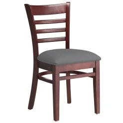 Lancaster Table & Seating Mahogany Finish Wooden Ladder Back Chair With Dark Gray Padded Seat