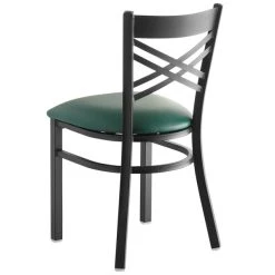 Lancaster Table & Seating Black Finish Cross Back Chair With 2 1/2″ Green Vinyl Padded Seat